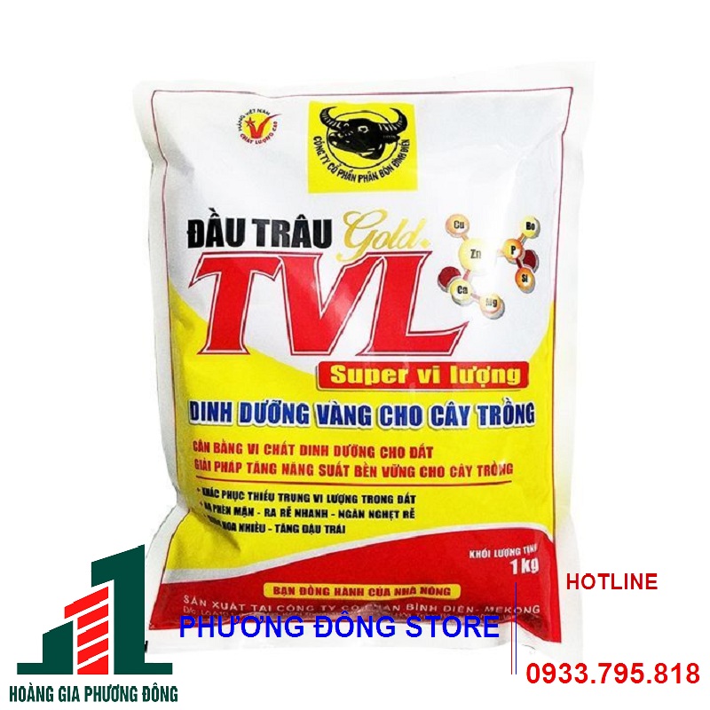 - Phân bón đầu trâu Gold TVL-Super vi lượng cug cấp dinh dưỡng làm tăng độ màu mỡ cho đất trồng, ngăn ngừa độc hữu cơ và phèn mặn. Cung cấp dinh dưỡng giúp cây hấp thụ nhanh, hạn chế các hiện tượng thiếu trung vi lượng, tác dụng tốt cho các giai đoạn sinh trưởng của cây.